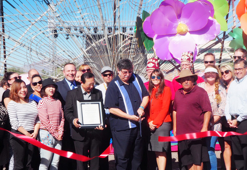 璀璨絢麗、獨(dú)具神韻的“2018世界之光圖森彩燈嘉年華”于11月7日在美國西部城市圖森華彩綻放。燈展受到當(dāng)?shù)卣蜕鐣?huì)各界的廣泛關(guān)注。Pima郡行政長官、圖森市常務(wù)副市長、市議會(huì)議員、郡商會(huì)會(huì)長、市大都會(huì)商會(huì)董事長、市旅游局局長、市交通局局長等美方官員出席開幕式。