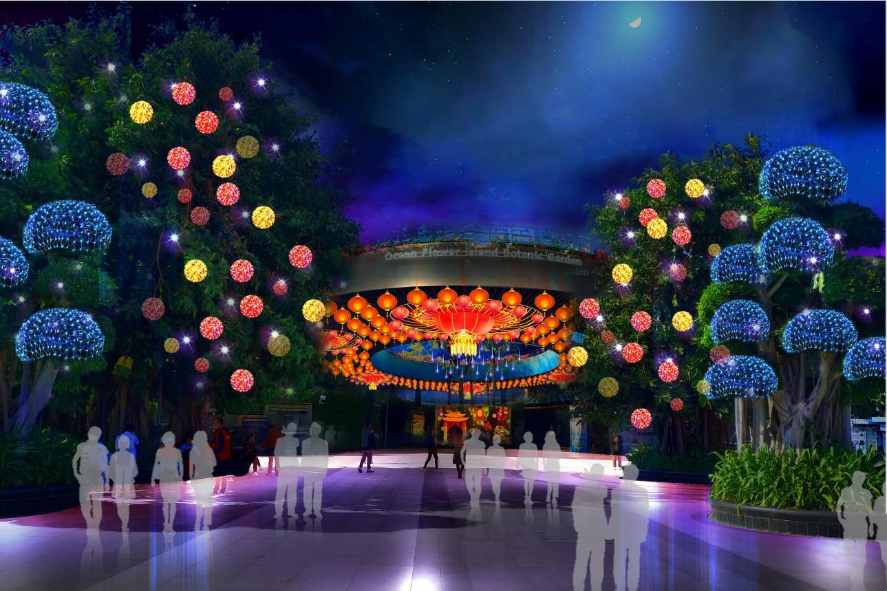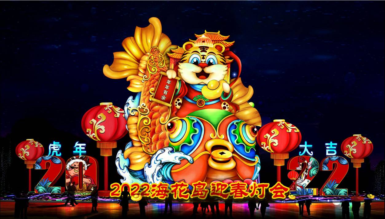 燈貿(mào)集團(tuán)創(chuàng)意、設(shè)計(jì)、制作的?;◢u新春燈會以虎年生肖文化為主題,展現(xiàn)椰風(fēng)海韻、喁喁鳥語,花蕊嫣然的旖旎景象,營造“面朝大海,春暖花開”夢幻般的彩燈體驗(yàn)場景。
